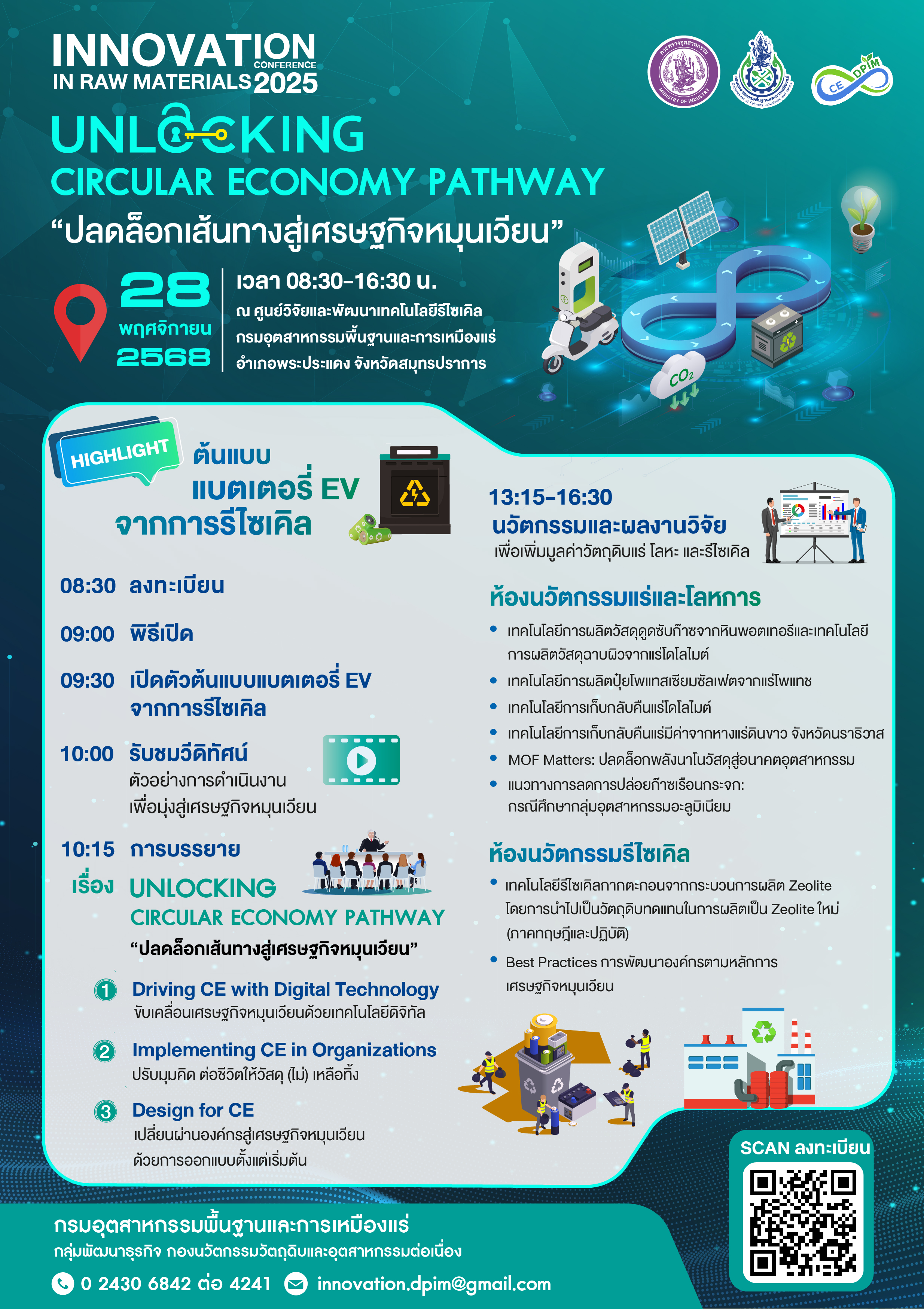 📢 ขอเชิญเข้าร่วมงานสัมมนาวิชาการประจำปี "Innovation in Raw Materials Conference 2025: Unlocking Circular Economy Pathway ปลดล็อกเส้นทางสู่เศรษฐกิจหมุนเวียน" 🔑 ♾️