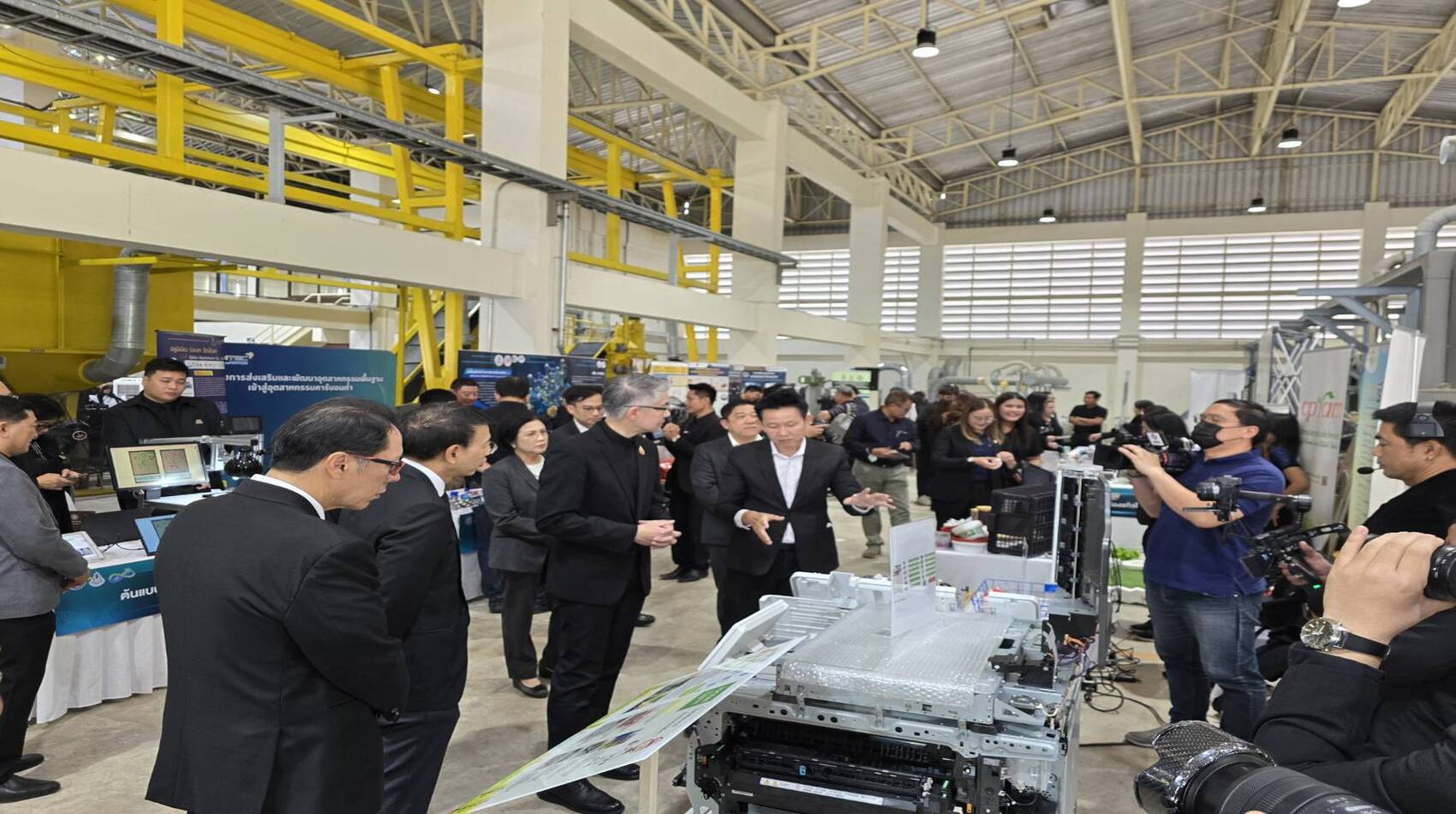 งานสัมมนาดังกล่าว จัดขึ้นเพื่อผลักดันนวัตกรรมและเทคโนโลยีสู่การผลิตวัตถุดิบ ทดแทนและวัตถุดิบขั้นสูงในเชิงพาณิชย์ ส่งเสริมให้ผู้ประกอบการสามารถนำหลักการเศรษฐกิจหมุนเวียนไปประยุกต์ใช้เพื่อพัฒนาองค์กร ภายในงานมีการบรรยายแบ่งปันประสบการณ์จากบริษัทที่มีการดำเนินงานที่ดีในด้านเศรษฐกิจหมุนเวียน และการบรรยายถึงแนวทางการออกแบบตามหลักการเศรษฐกิจหมุนเวียนจากผู้ทรงคุณวุฒิ รวมทั้งมีการบรรยายเชิงลึกเพื่อถ่ายทอดผลงานที่สำคัญของ กพร. ทั้งด้านนวัตกรรมแร่ โลหการ และรีไซเคิล ตลอดจนการเผยแพร่นวัตกรรมและผลงานวิจัยและพัฒนาที่ประสบความสำเร็จและผลงานการยกระดับผู้ประกอบการผ่านการจัดแสดงนิทรรศการรวมกว่า 13 นิทรรศการ และมีการเปิดตัว ♻️⚡️"ต้นแบบแบตเตอรี่ EV จากการรีไซเคิล" ครั้งแรก⚡️♻️ ซึ่งเป็นผลงานสำคัญจากการต่อยอดผลงานที่ผ่านมาของ กพร. โดยได้พัฒนาเทคโนโลยีรีไซเคิลเพื่อนำโลหะและสารประกอบโลหะในแบตเตอรี่ลิเทียมไอออนเสื่อมสภาพจากยานยนต์ไฟฟ้าและอุปกรณ์อิเล็กทรอนิกส์ มาเป็นสารตั้งต้น (Precursor) สำหรับผลิตแบตเตอรี่ใหม่ ได้อย่างมีประสิทธิภาพด้วยกระบวนการที่เป็นมิตรต่อสิ่งแวดล้อม สามารถแยกสกัดลิเทียมเพื่อนำกลับมาใช้ประโยชน์ได้ไม่น้อยกว่าร้อยละ 85 รวมถึงแยกสกัดโคบอลต์ นิกเกิล และแมงกานีส ได้ไม่น้อยกว่าร้อยละ 98 และได้นำมาใช้เป็นวัตถุดิบในการผลิตแบตเตอรี่ต้นแบบชนิด NMC 622 สำหรับยานยนต์ไฟฟ้าขนาดเล็ก รวมถึงอุปกรณ์กักเก็บพลังงาน เพื่อเป็นตัวอย่างให้แก่ผู้ประกอบการนำไปประยุกต์ใช้ขยายผลในเชิงพาณิชย์ โดยได้รับความสนใจจากผู้ประกอบการ หน่วยงานภาคเอกชน หน่วยงานภาครัฐ หน่วยงานวิจัย และสถาบันการศึกษามากกว่า 200 ราย