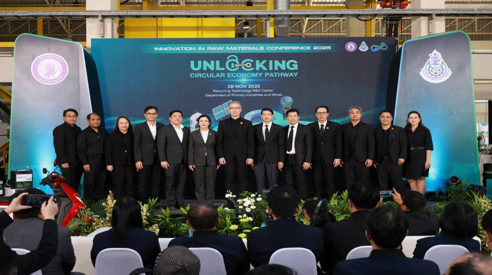 วันนี้ 28 พฤศจิกายน 2568 นายณัฐพล รังสิตพล ปลัดกระทรวงอุตสาหกรรม เป็นประธานเปิดงานสัมมนาวิชาการ "Innovation in Raw Materials Conference 2025: Unlocking Circular Economy Pathway ปลดล็อกเส้นทางสู่เศรษฐกิจหมุนเวียน" 🔑 ♾️ โดย นายอดิทัต วะสีนนท์ อธิบดีกรมอุตสาหกรรมพื้นฐานและการเหมืองแร่ กล่าวรายงานวัตถุประสงค์ของการจัดงาน และ นายอานันท์ ฟักสังข์ รองอธิบดีกรมอุตสาหกรรมพื้นฐานและการเหมืองแร่ นางสาวอารยา ไสลเพชร รองอธิบดีกรมอุตสาหกรรมพื้นฐานและการเหมืองแร่ เลขานุการกรม ผู้อำนวยการกองนวัตกรรมวัตถุดิบและอุตสาหกรรมต่อเนื่อง ผู้อำนวยการกองยุทธศาสตร์และแผนงาน ผู้อำนวยการกองบริการงานอนุญาต ผู้อำนวยการกองวิศวกรรมบริการ พร้อมด้วยอุตสาหกรรมจังหวัดต่าง ๆ และเจ้าหน้าที่กรมอุตสาหกรรมพื้นฐานและการเหมืองแร่ เข้าร่วม ณ ศูนย์วิจัยและพัฒนาเทคโนโลยีรีไซเคิล อำเภอพระประแดง จังหวัดสมุทรปราการ